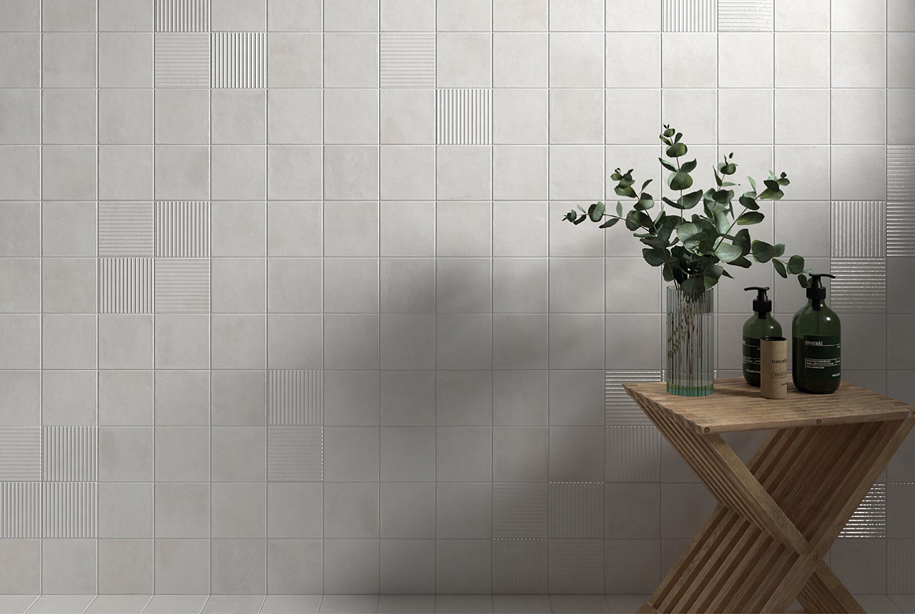 Если вы сочетаете белую и цветную плитку, можно спокойно использовать светлую затирку для всей площади укладки: