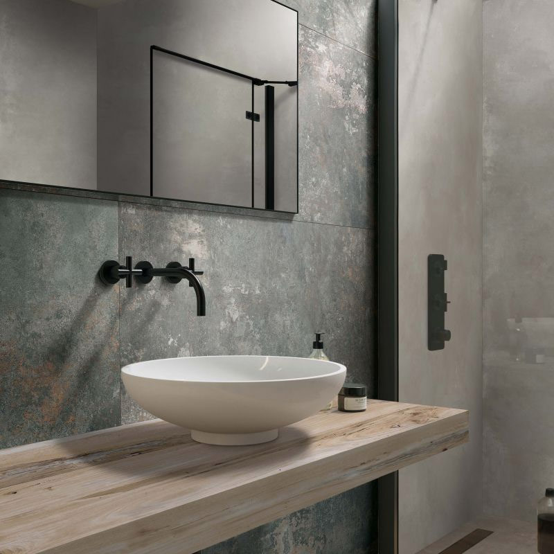 Прежде всего, обратите внимание на идею – вдохновленная родовыми домами с привидениями и старинными замками с загадками, коллекция рисует образ скрытный, потертый, загадочный, но, как ни странно, при этом очень современный. Имитация цемента, четыре градации серого,  мхово-зеленый, шалфейный, выцветший черный и большие форматы – все это делает коллекцию АВК Ghost  суперактуальной.