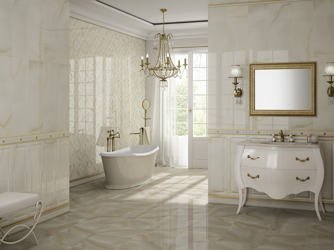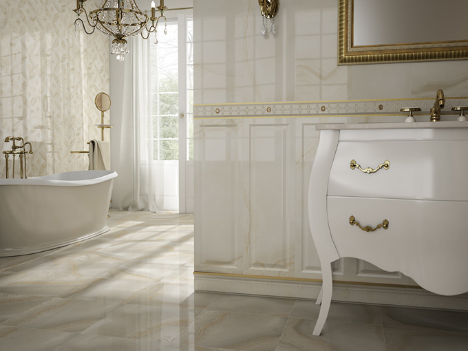 APARICI BEYOND сочетает в себе необыкновенные цвета и узоры, переплетение сказочных фактур и игру света, издавна символизируя богатство, роскошь и статус. Настенная плитка Beyond представлена в трех цветах: бежевый (BEYOND BEIGE), слоновая кость (BEYOND IVORY) и бирюзовый (BEYOND TURQUESA) в формате 29,75х89,46(см). Каждый из трех оттенков фоновой плитки дополнен интересными декорами с классическим узором в виде симметричных вензелей (BEYOND MIDDLE, BEYOND DECOR) и оригинальной мозаикой (BEYOND DECOR MOSA) под оникс потрясающей красоты!