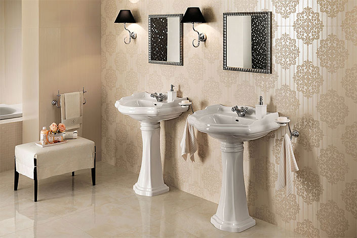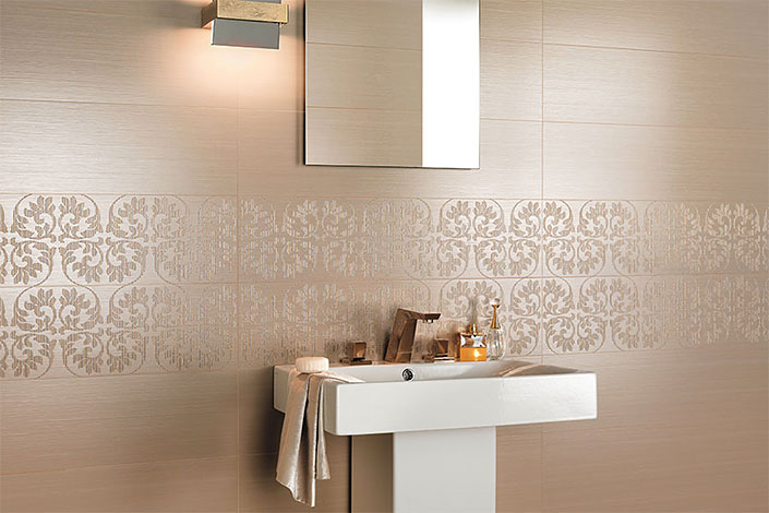 Керамическая плитка Brilliant выпускается в размере 40х80 см и 20х80 см. Край плитки ректифицирован под углом 90 градусов, размер поверхности довольно большой – все это позволяет создать единое пространство – безграничную поверхность из шелковистого материала, окутывающего ванную комнату подобно грезам