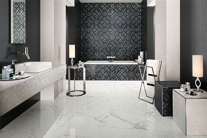 Керамическую плитку Atlas Concorde Brilliant можно использовать как для частных помещений, так и для веллнес-центров, гостиниц, представительских интерьеров. Коллекция смотрится представительно и подчеркивает уровень всего интерьера и статуса владельца.