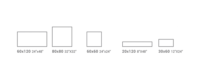 Керамогранит Grange представлен в пяти форматах: 50х100 см., 50х50 см., 33х50 см., 33х33 см. и 16,5х33 см. Выбор форматов очень разнообразен. Вы можете подобрать себе крупноформатную плитку, либо остановиться на стандартных классических размерах.