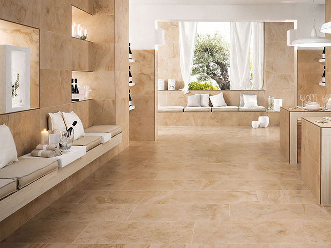 Оттенки коллекции: Jerusalem Ivory (иерусалимская слоновая кость), Bourgogne Sand (бургунский песок), Rapolano Beige (Раполано беж), Travertino White (белый травертин) и Travertino Almond (ореховый травертин).