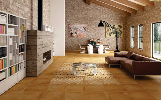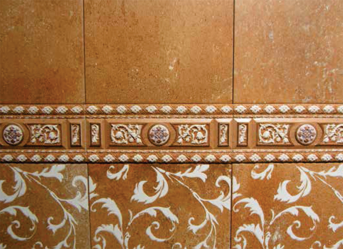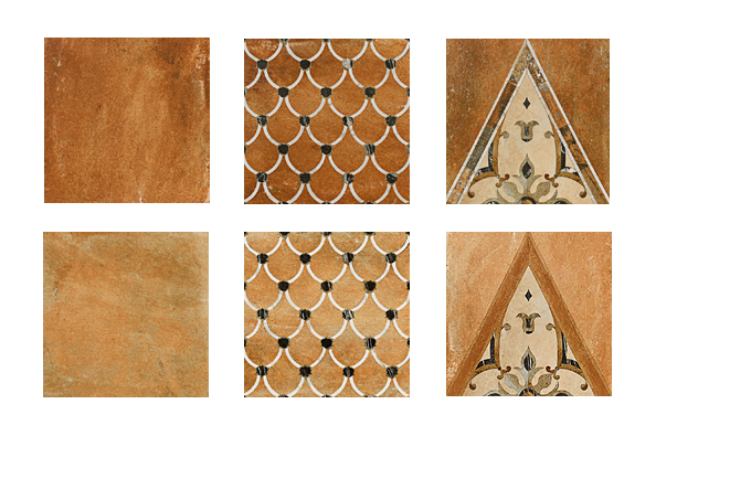 Напольный керамогранит представлен в формате 59,2х59,2 см в двух оттенках: песок (плитка Kera Sand) и красный кирпич (плитка Kera Rosso). Основу можно смело разбавлять стильными вставками (Kera Stamp, Kera Rossone). Изображения роскошных цветочных бутонов подчеркнут богатство и благородство интерьера, узоры расставят акценты. И даже незначительные загрязнения смотрятся на такой плитке естественно!