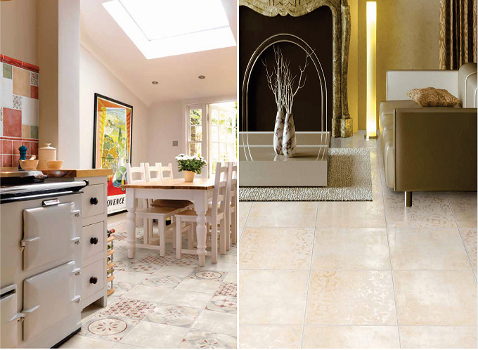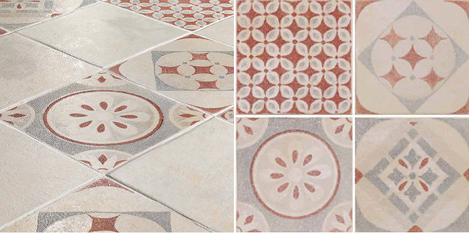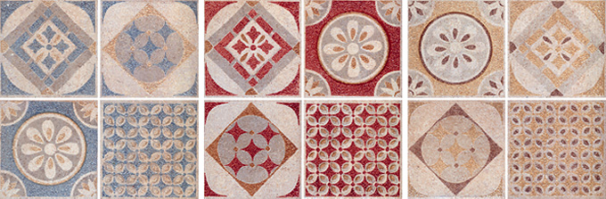 Она представлена в формате 50х50 (см) – фон стандартный и фон декорированный. Три нежных красочных оттенка на выбор: Volterra(Бежевый), Ravenna (Кирпичный) и Marsala (Серый). К любому фону Вы сможете подобрать стильные декоры с рисунком, которые представлены в комплектах по 4 штуки размером 12,5х12,5(см) и 25х25(см) каждый.