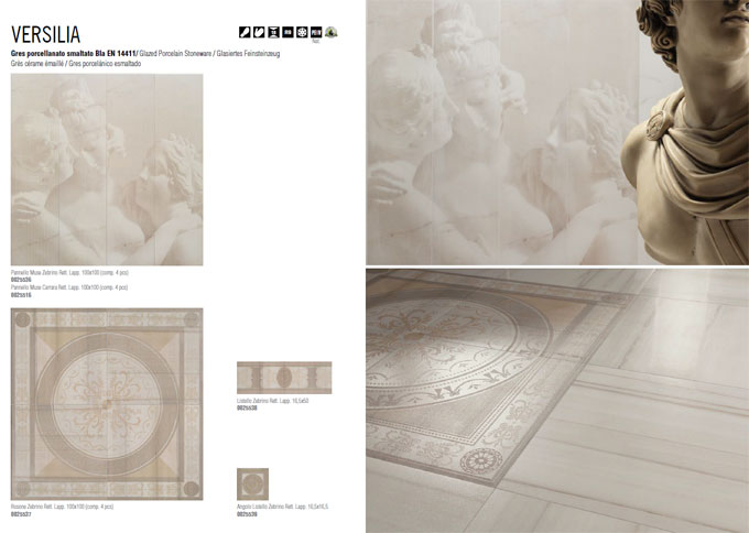 Благодаря этому, Versilia может быть использована как в помещениях классического стиля, так и в современных интерьерах. Эта плитка создана как идеальный фон для подчеркивания красоты помещения.