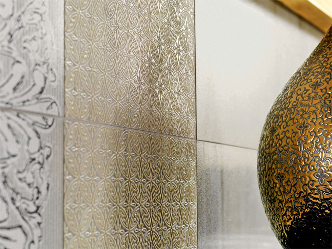 В коллекции Versilia эффект достигается в большей степени за счет сочетания специальных глазурей, которые играя, отражают свет. Поэтому эта плитка намного безопаснее для использования, чем обычная блестящая плитка.