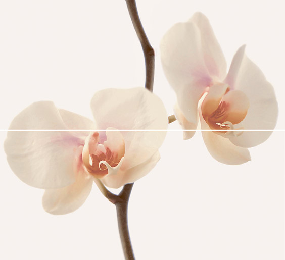 Размер плитки – 25х55 см, размер одной композиции орхидей - 50х55 см, при этом они могут складываться в повторяющийся рисунок, заполняя собой часть стены и создавая акцент – например, у раковины или над ванной.