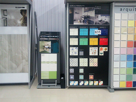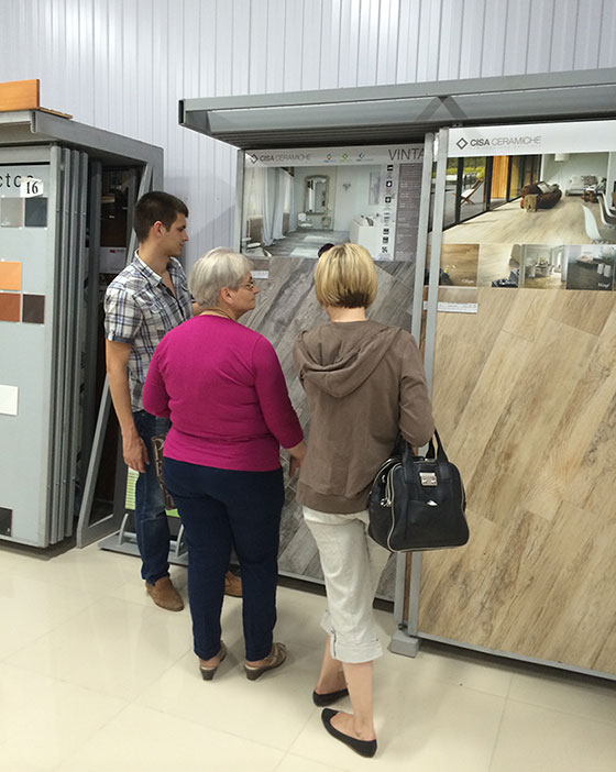 Вы увидите большой ассортимент плитки самых разных форматов, включая самые популярные, плитку 10х10 см, 20х20 см и 60х60 см. Попробуете отличить плитку под дерево от дерева.