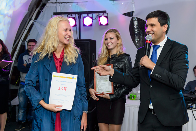 Среди гостей вечеринки было разыграно множество подарков и призов, предоставленных партнерами Презентации, в том числе сетью магазинов «Санта-Керамика»