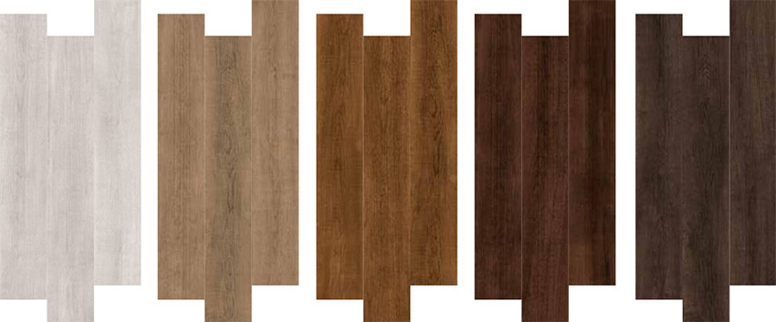 В серии выпускается 6 оттенков плитки: Lakewood White (светлая, почти белая плитка), Lakewood Natural (похожая по оттенку на дуб), Lakewood Burnt (напоминающая каштан), Lakewood Brown (темное дерево) и Lakewood Moka (под венге). Каждый оттенок выпускается в формате 20х120 см и ректифицирован по краям, что позволяет укладывать плитку с минимальными швами.
