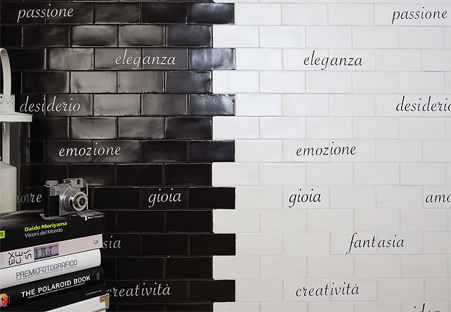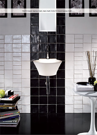 Коллекция выпускается в четырех размерах: 13х39,6 см, 6,5х39,6 см, 13х13 см, 6,5х13 см Небольшие форматы доступны в четырех цветах: белый (mood bianco), черный (mood nero), светло-коричневый (mood tortora) и бежевый (mood naturale). Большие размеры выпускаются в белом и черном цветах. Плитка имеет матовое покрытие и набор интересных декоров.