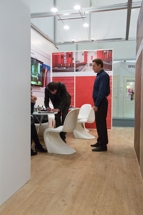 На стенде была также представлена коллекция VINTAGE - дерево в стиле винтаж, с потертостями, неровностями и артистическим духом. Основными достоинствами материала являются ее прочность и надежность, как следствие, возможность выдерживать максимальные нагрузки. Имитация дерева выглядит настолько естественно, что желание прикоснуться, дабы убедиться в ее подлинности, пробуждало вдохновленное любопытство гостей на протяжении всей выставки.