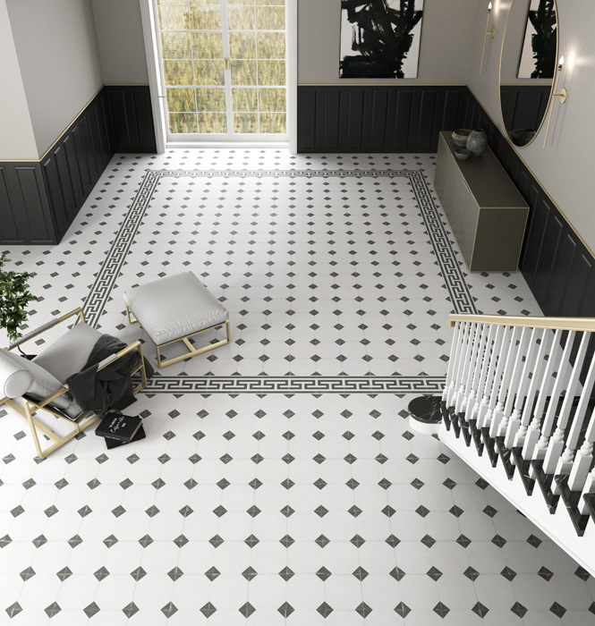 Восьмиугольная напольная плитка с геометрическим орнаментом