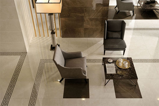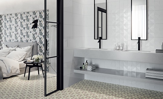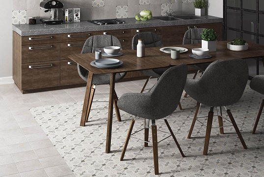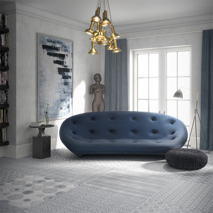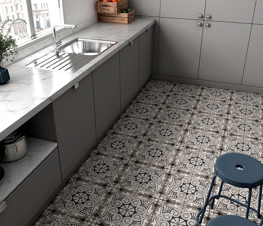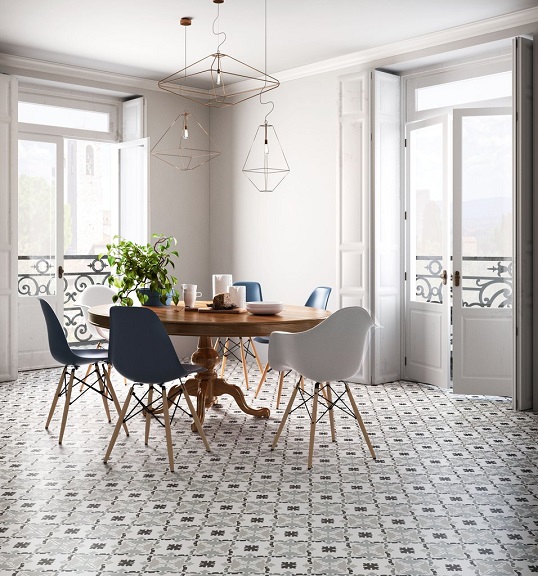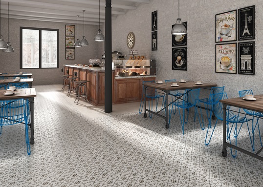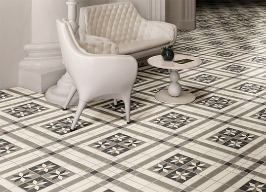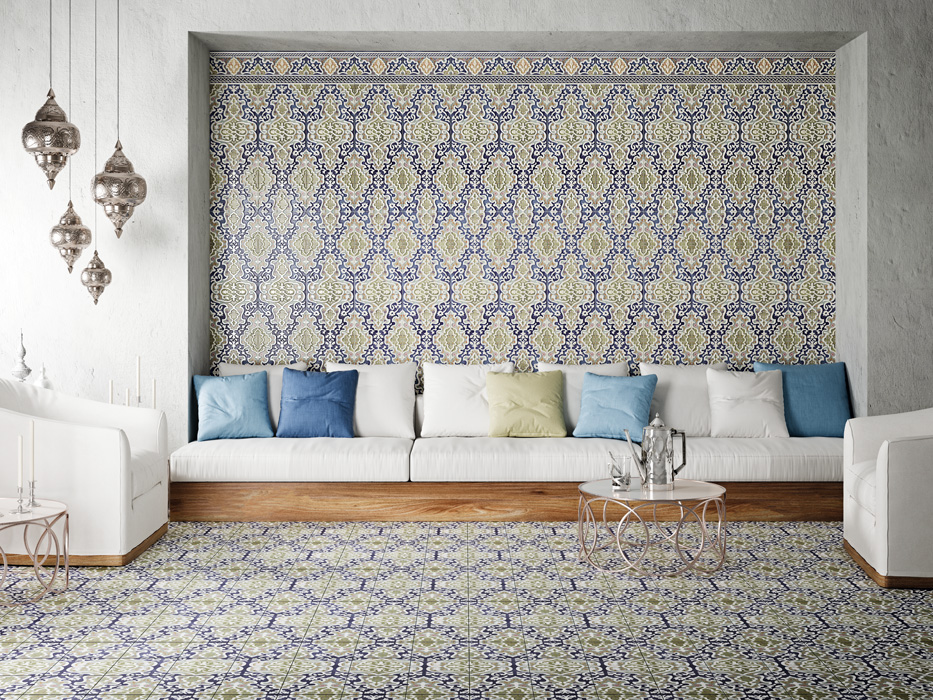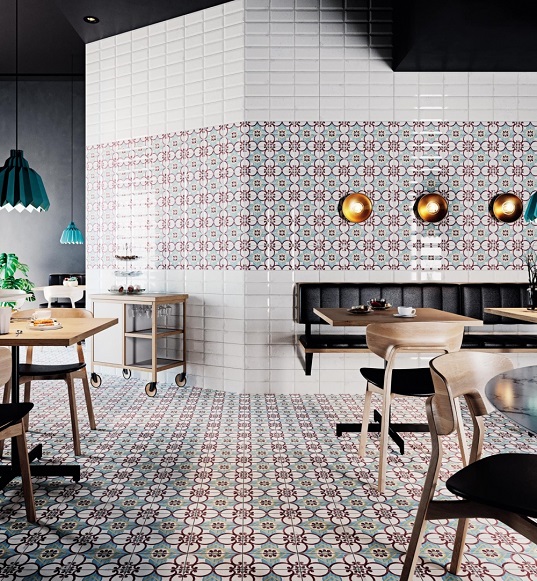 Развитие цифровой печати за последние годы привело к тому, что напольная плитка с орнаментом стала намного доступнее. Раньше орнамент выпускался в качестве декоров и продавался поштучно, а сейчас можно найти много коллекций, целиком состоящих из перемешанных графических рисунков и все они продаются за квадратный метр. Плюсом использования такой плитки является возможность использования нейтральной спокойной мебели - интерьер в любом случае будет ярким и запоминающимся.