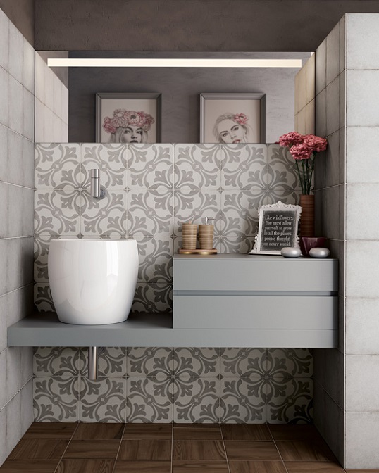 Изящная коллекция плитки с романтичным ажурным орнаментом, подходит для создания центральных зон в интерьере и для самостоятельной укладки.