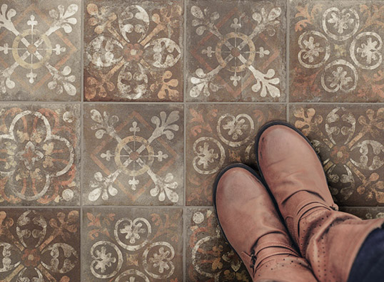 Напольная плитка с орнаментом, представленная в магазинах Санта-Керамика