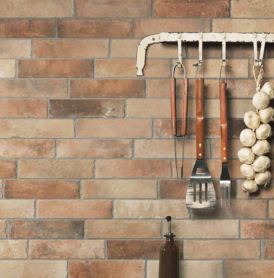 Плитка под состаренный кирпичик, подходит для оформления современных интерьеров с уклоном в легкий прованс. Отлично моется.