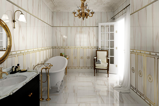 В коллекции есть как настенная керамическая плитка в размерах 40х80 с глянцевой поверхностью и 50х120 с шелковистой поверхностью, так и универсальный керамогранит в форматах 160x320 см, 160x160 см, 120x278 см (толщина 6мм); 120x240 см, 120x120 см, 60x120 см, 75x150 см, 75x75 см, 37,5x75 см, 60x60 см 30x60 см (толщина 9 мм). Цвет CALACATTA PRESTIGIO отличается четкими прожилками на белом фоне