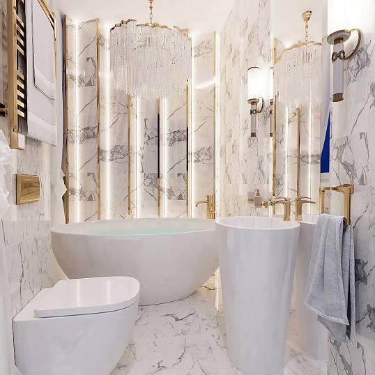 Настенная плитка под белый мрамор для маленькой ванной комнаты