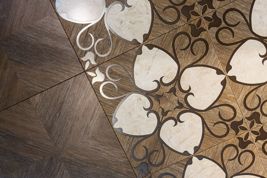 Дизайнерская коллекция плитки под паркет с каменной инкрустацией. Позволяет создать эффектные акценты в помещении. Подходит для частных и коммерческих объектов.