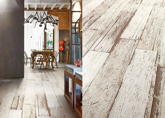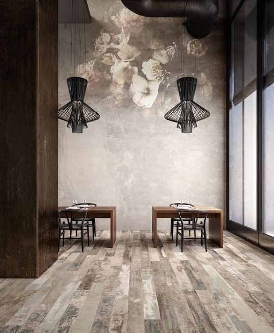 Плитка под состаренное дерево отличатся структурностью поверхности (фактической или напечатанной, иллюзорной) и часто используется дизайнерами для оформления помещений в классическом стиле. Однако в последнее время на рынке появилась необычная состаренная плитка такой красоты, что нередко ее можно встретить в модных журналах при оформлении современных помещений.