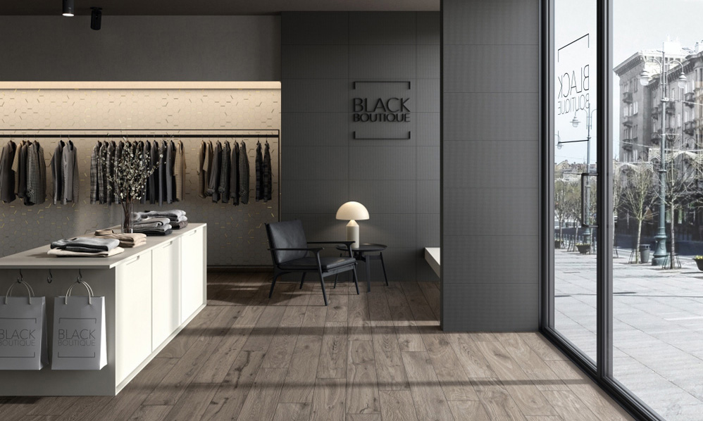 Серая плитка под дерево, представленная в магазинах Санта-Керамика