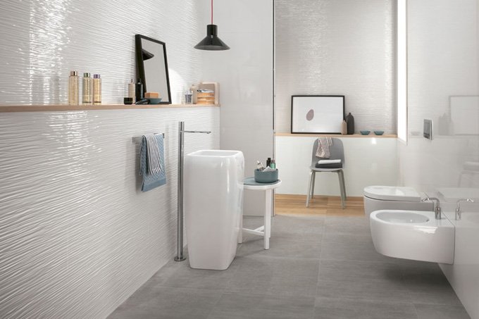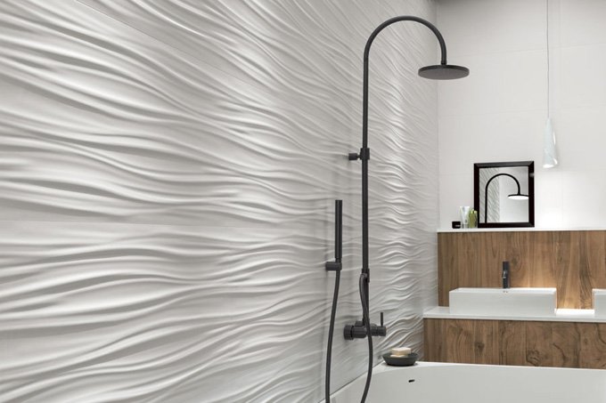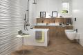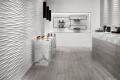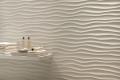 Извилистые волны с рельефом Адриатического побережья (3D wall White), песчаных дюн и барханов жаркой Сирийской пустыни (3D wall Sand), - все это шелковая роскошь для ванных комнат эко-стиля с природной естественностью и соблазнительной игрой света и теней на матовой глазури плитки.