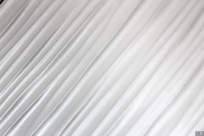 • Flows White Matt 50х110 см – полоски чуть смещены относительно оси с эффектом легких тканевых драпировок тончайшего шелка для создания атмосферы тонкой романтики;