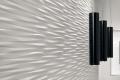 Матовая (черная/белая) и глянцевая (белая) структурированная поверхность в виде аккуратных последовательных объемных штрихов идеально подходит для современной внутренней облицовки.