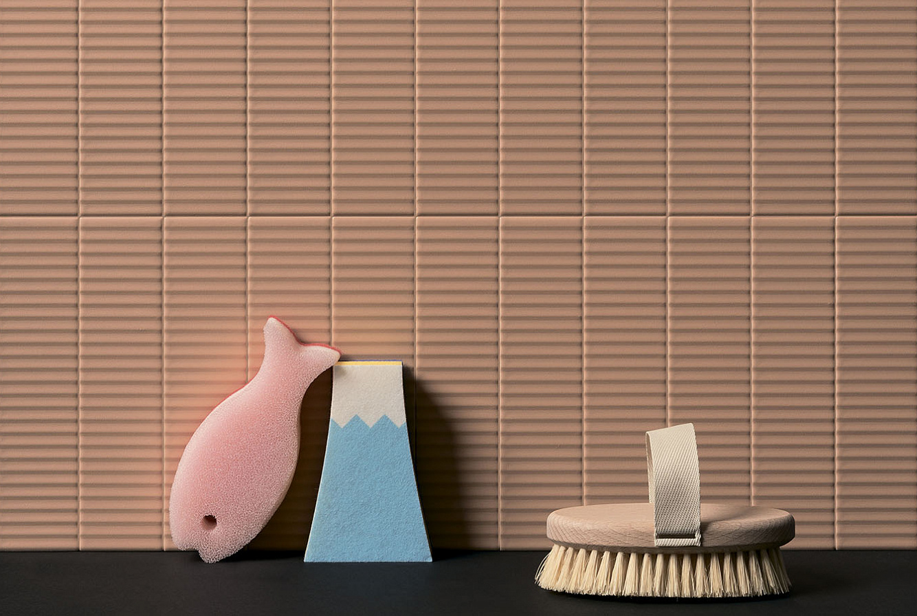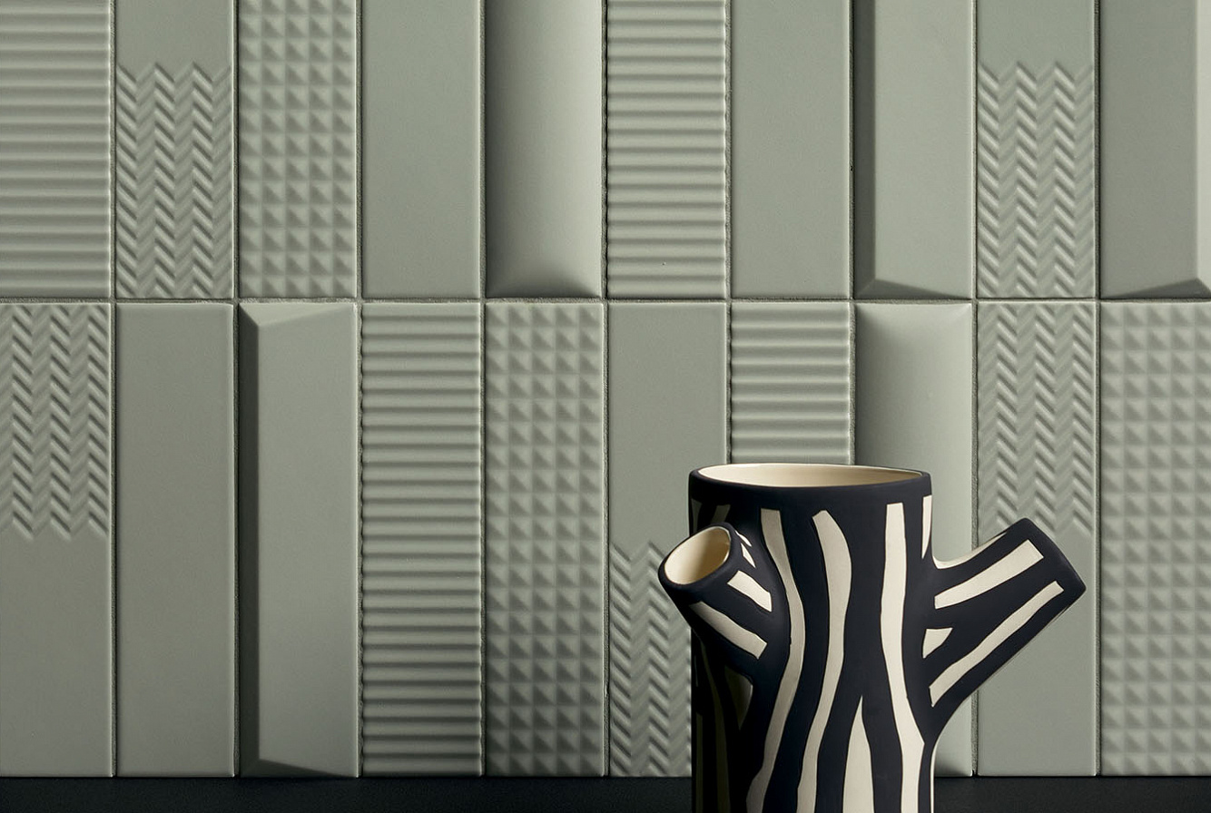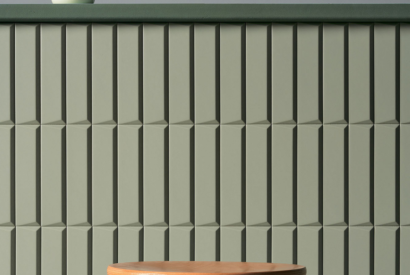 Второе, что привлекает внимание в Biscuit, это матовая поверхность и объемная текстура плитки. Каждая из цветовых линеек представлена плоской серией Plane, слегка выпуклыми элементами Dune и геометрическими паттернами Waves, Strip, Stud, Peak. При попадании лучей света на объемную текстуру плиток последних 4 линеек, стены дома будто оживают, позволяя наслаждаться удивительной игрой теней.