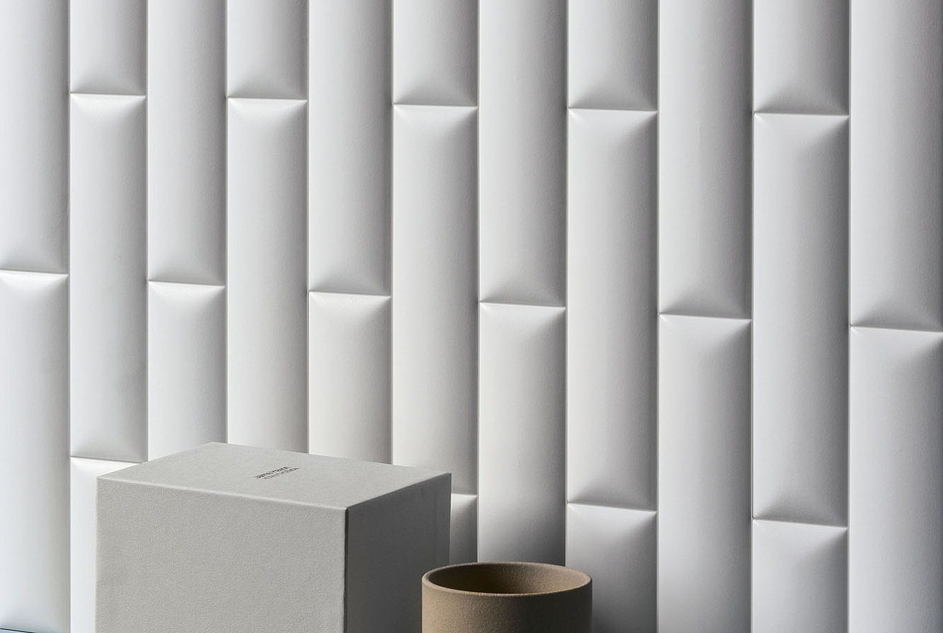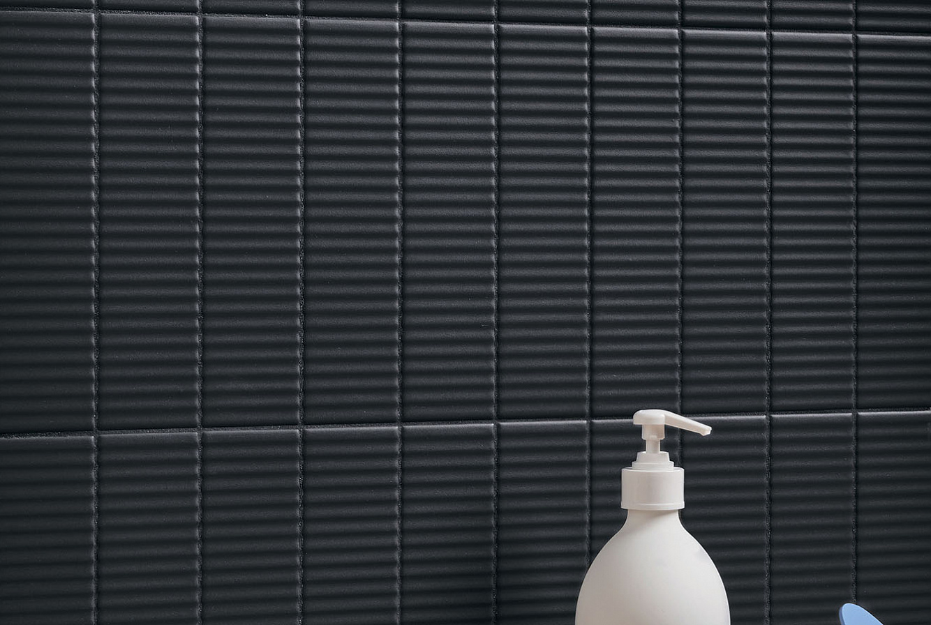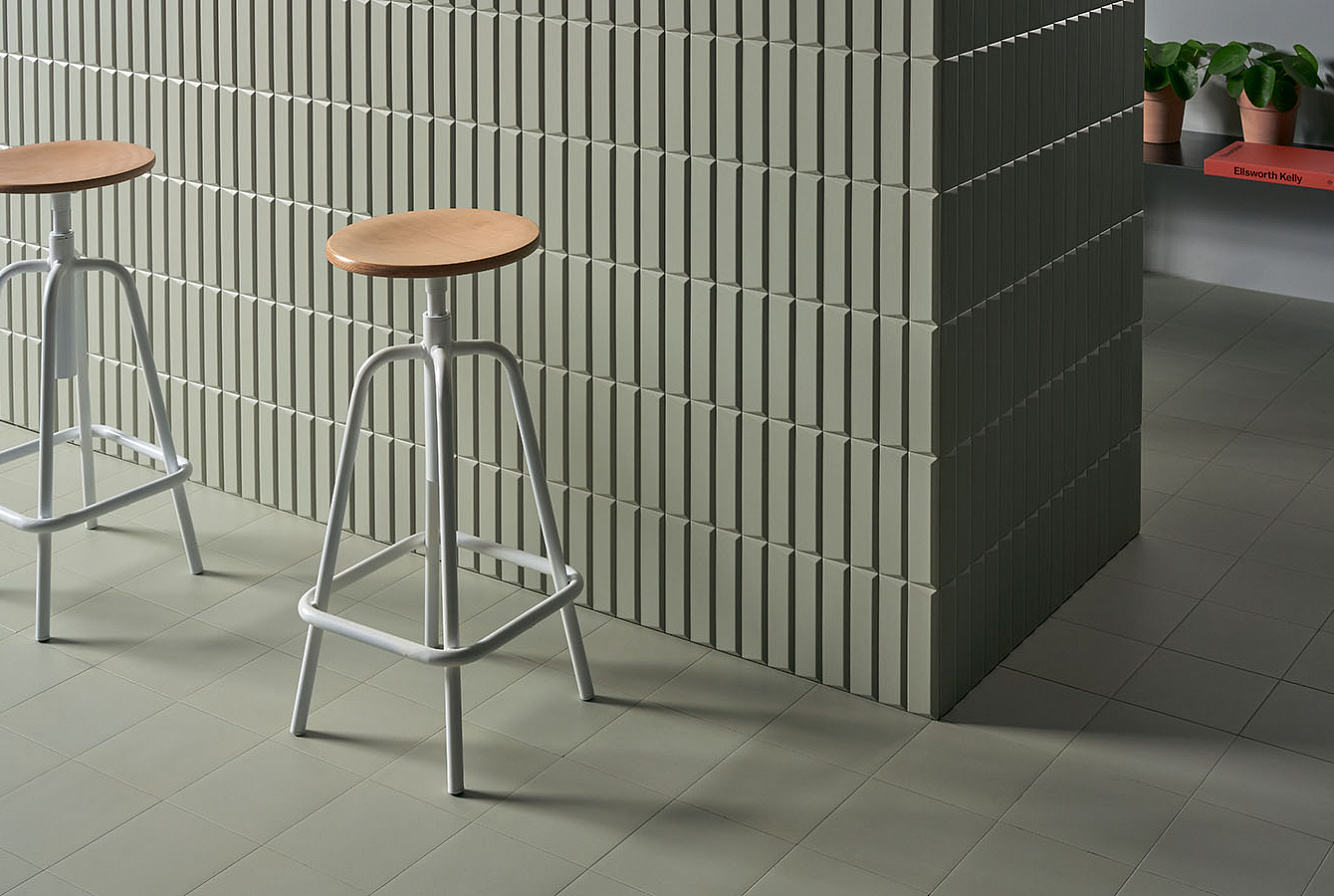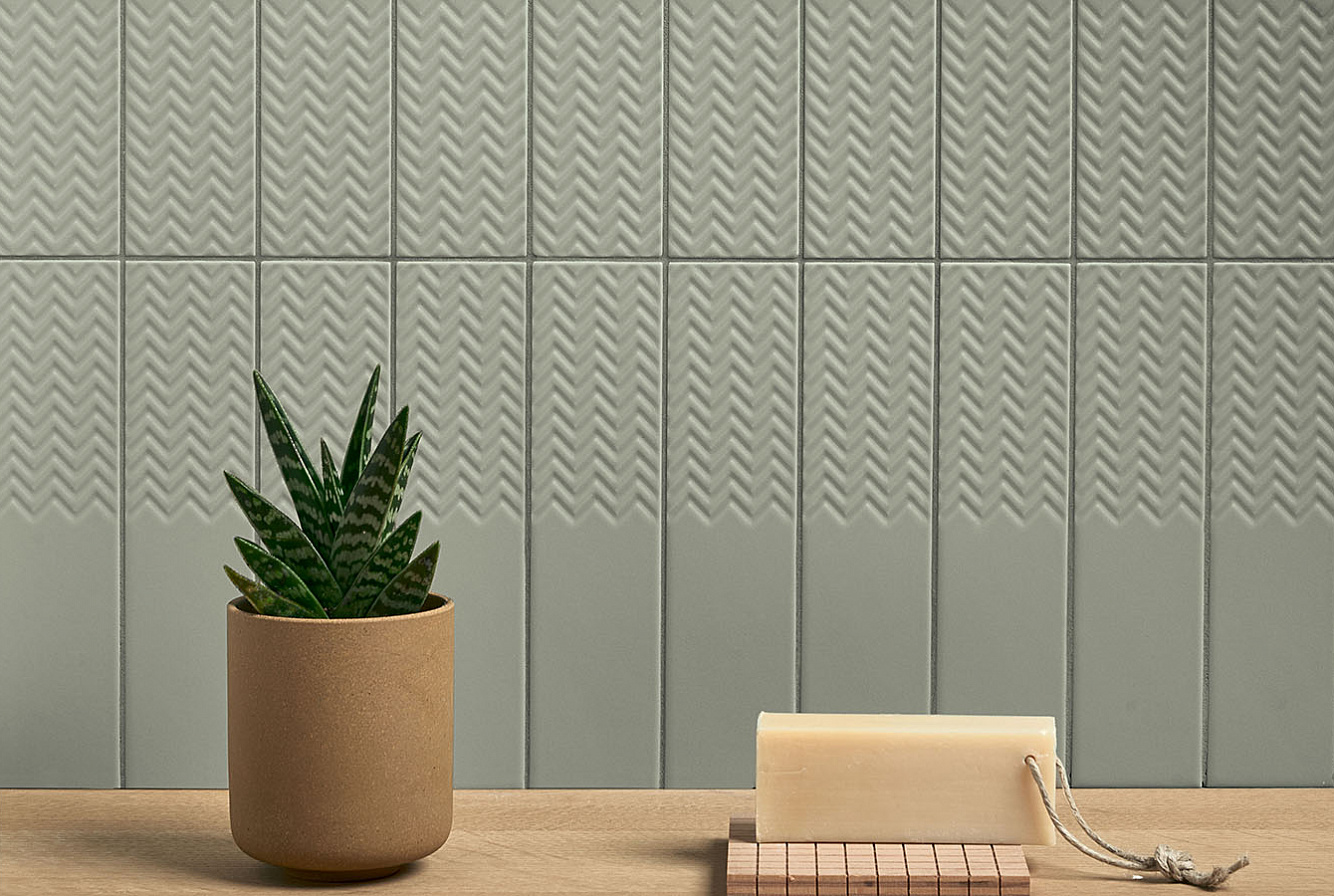 Второе, что привлекает внимание в Biscuit, это матовая поверхность и объемная текстура плитки. Каждая из цветовых линеек представлена плоской серией Plane, слегка выпуклыми элементами Dune и геометрическими паттернами Waves, Strip, Stud, Peak. При попадании лучей света на объемную текстуру плиток последних 4 линеек, стены дома будто оживают, позволяя наслаждаться удивительной игрой теней.