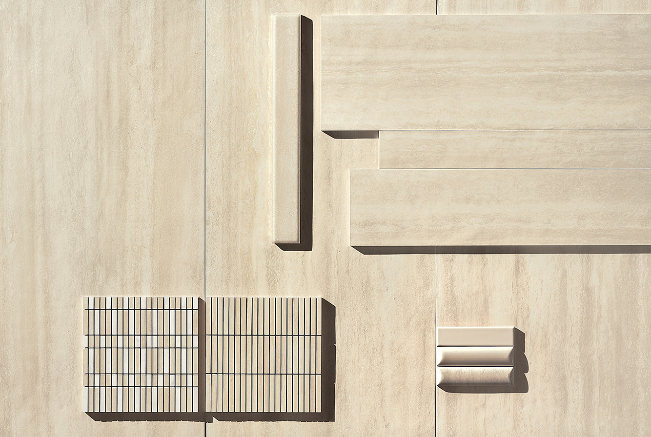 Для настенного применения в коллекцию включены объемные плитки Dune и Plain в формате 5х20 см, доступные как в матовом, так и в глянцевом исполнении. Эти элементы переосмысливают культовую коллекцию Biscuit, которая уже завоевала любовь архитекторов и дизайнеров по всему миру.