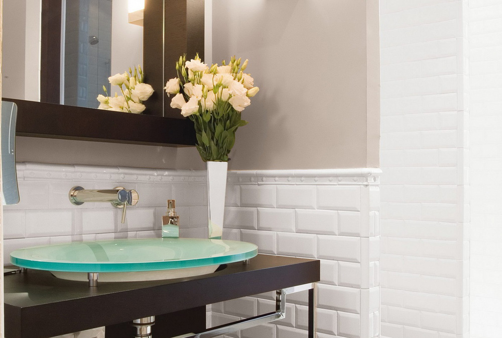 Бисквитный и белые оттенки выполняются в формате готовых модулей Enmallado 30,5х30,9 см, которые облегчают и ускоряют процессу укладки плитки. Готовые элементы состоят из плиток 5х10 см, при этом плитки возможны гладкие и со слегка покатыми кромками, напоминая подушечки.