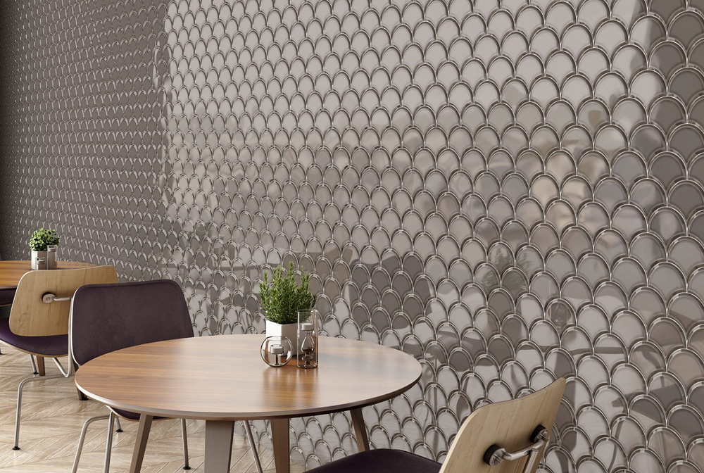 Renaissance коллекция сочетает прошлое и настоящее. Очертания восточной арабески и а-ля рыбья чешуя встречаются в исторических картинах и зарисовках. Дизайнеры разработали цветовую гамму, которая универсально подходит для классических и концептуальных интерьеров. Поверхность плитки покрывается глянцевыми глазурями.