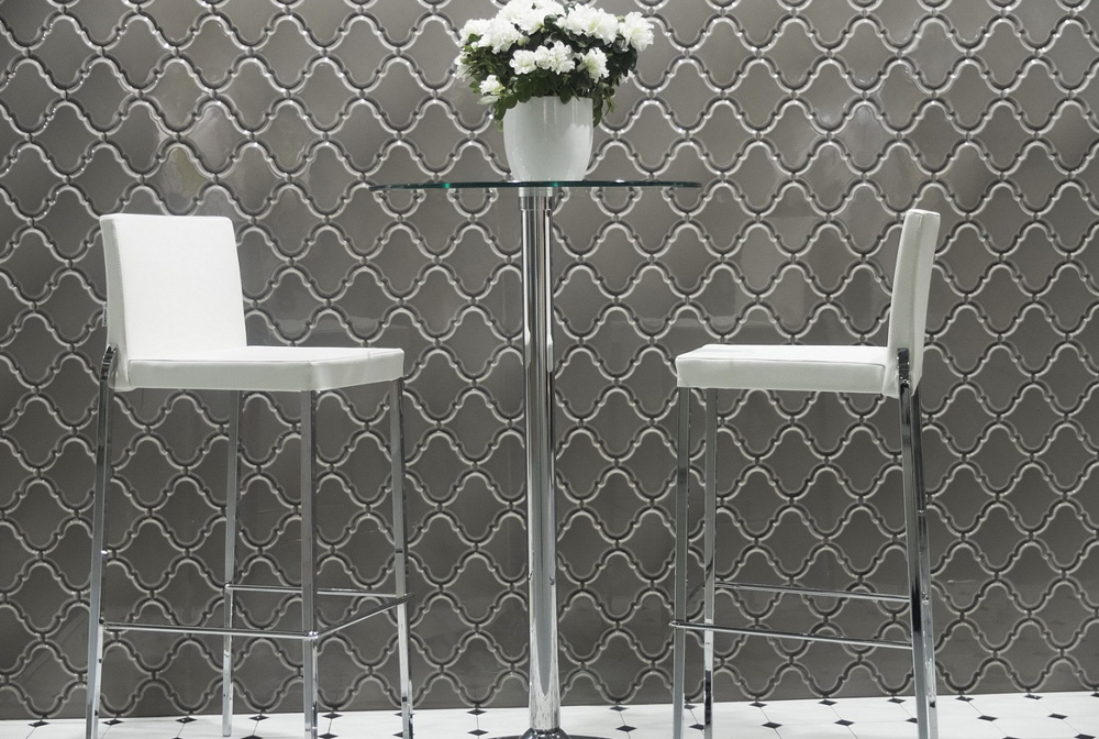 Цветовые решения предлагаются в двух вариантах формы – в форме четырехлистника 15х15 см или восточной арабески Arabesco и в форме рыбьей чешуи Escama 13х15 см. Кроме того, восточная арабеска делится пополам и предлагается в форме половинки Remate. Восточная арабеска выпускается с гладкой поверхностью Lisa и с фаской по контуру плитки Biselado.
