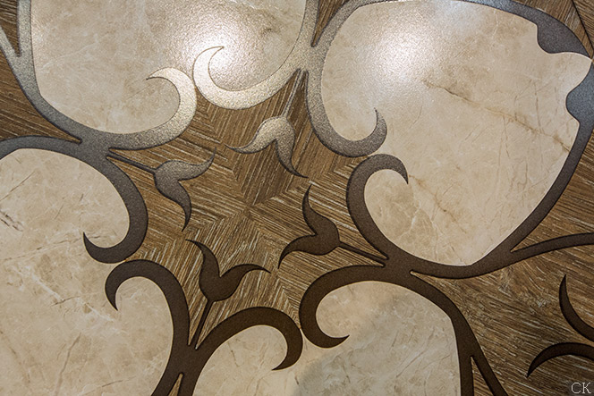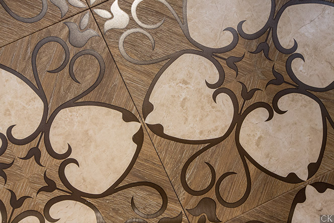 Дополняет коллекцию Equos Aparici эффектные декоративные элементы с комбинированным финишем Equos Brown 59.2х59.2 см. Мраморные полированные орнаменты в стиле модерна в сочетании с матовой поверхностью плитки эффектны и становятся центральным элементом дизайна, создавая впечатления полноценного коврового элемента.