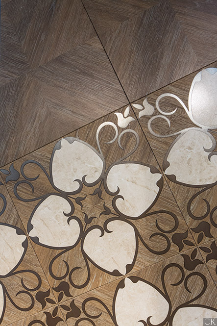 Ректифицированные боковые кромки плитки дают возможность укладки коллекции практически без шва, продолжая тематику паркетной укладки «замком». Поскольку декоративные элементы рекомендуются фабрикой Aparici для укладки в домашних интерьерах, то и основная фоновая плитка предполгает аналогичное использование, делая жилые пространства еще более уютными, наполняя теплом натурального аутентичного материала – обработанной древесины – дубового паркета.