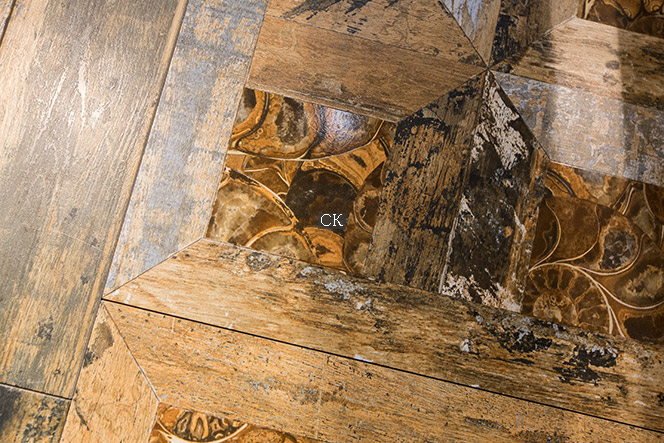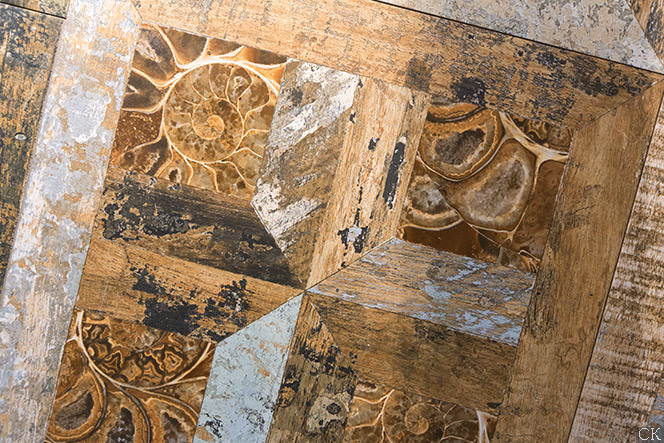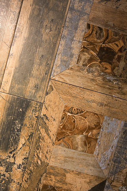 На поверхности плитки изображены и ракушки и потертое дерево и остатки краски. Каждая плитка уникальна, напечатана на струйном принтере, поэтому и называется Aparici Kingdom Baron Stamp Natural Mix