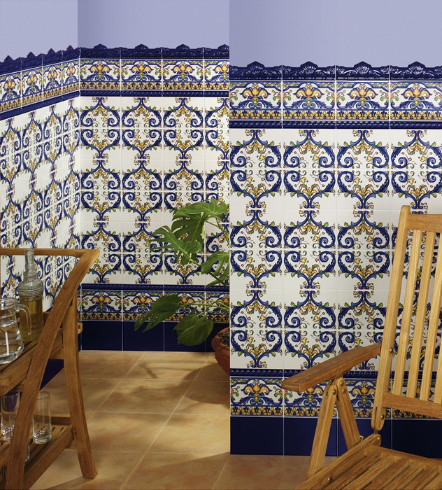 Коллекция керамической плитки Al-Andalus производится из традиционной для испанской керамики красной глины. Поверхность плитки покрывается глянцевыми глазурями с витиеватой росписью в испанском и марокканском стилях. Плитка компактного формата 15х20 см подходит для оформления самых компактных помещений. Настенная плитка предлагается в двух вариантах орнамента: LUCENA и LUSITANIA.