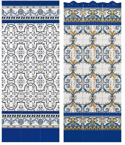 Для каждой серии выпускается плитка цоколь или плитка карниз – CENEFA. Фабрика комплектует серию базовой плиткой в двух оттенках: насыщенном зеленом Verde и кобальтовом Cobalto. Кроме того, в аналогичном сине-зеленом цвете предлагается выпуклый бордюр 3х20 см и карниз 5х20 см. Коллекция AL-ANDALUS создает впечатление керамики ручного изготовления и рекомендуется оформления настенных поверхностей в ванной комнате и на рабочей зоне кухонного фартука.