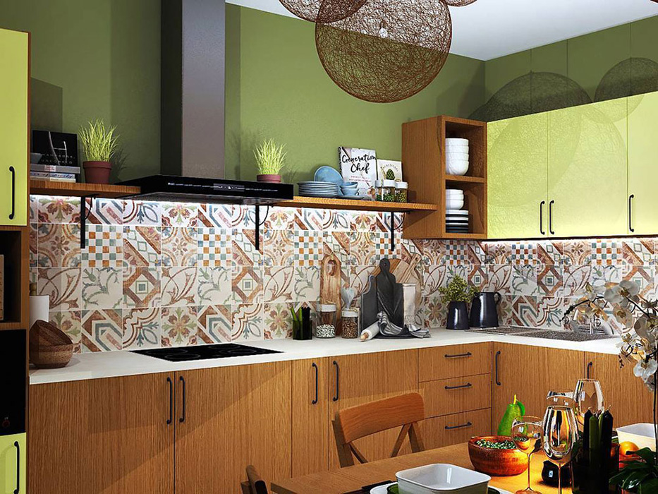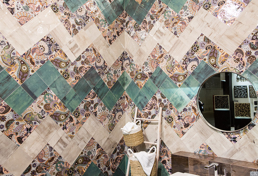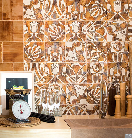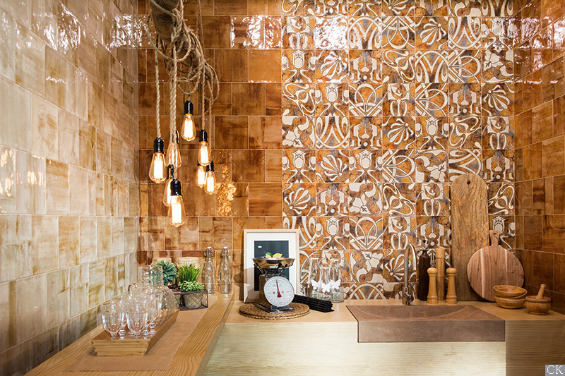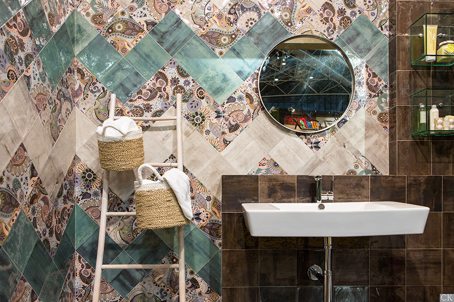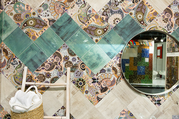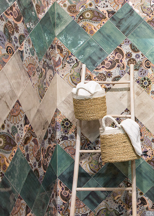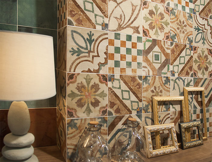 Коллекция с успехом используется для отделки как ванных комнат, так и вертикальных поверхностей на кухне (фартуков, стен, зон вокруг обеденного стола). Плюсом использования коллекции является то, что к ней есть фон с теми же декорами, что и в настенной плитке, только подходящими для пола.