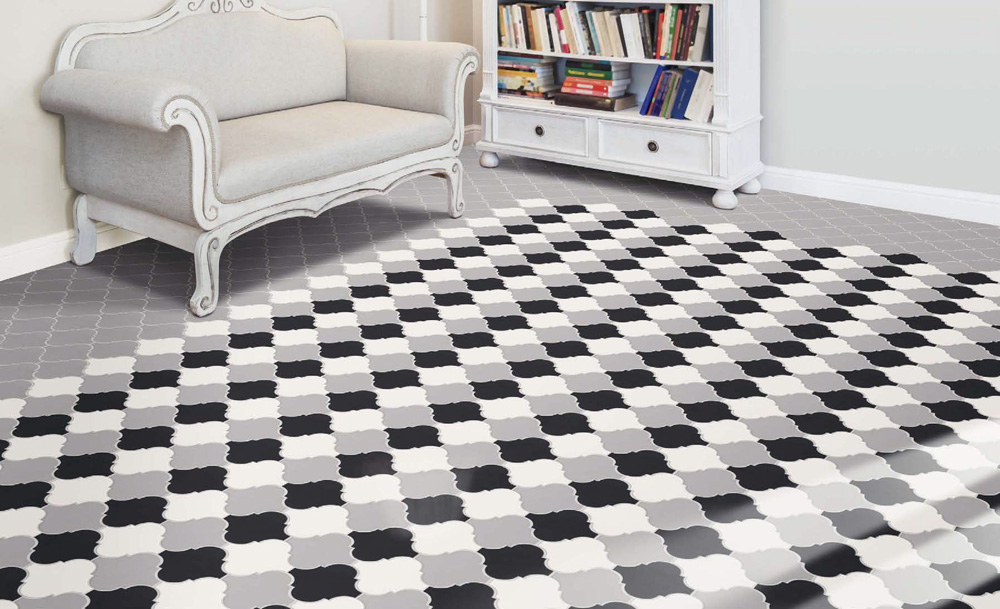Лаконичная черно-белая гамма может быть использована и для создания яркого и дерзкого стиля Арт-деко, в стилистике которого нередко используются восточные орнаменты, арабская вязь, дамасский принт. Мавританский стиль, вобравший в себя многие характерные черты исламских традиций и восточного быта, стал обособленным и более комфортным, понятным для европейского менталитета. Особое внимание стоит уделить приземистой мебели без вычурных и вытянутых спинок, восточной чеканке на светильниках и аксессуарах, напольных восточных сосудах и вазах. Своды и перекрытия стоит оформить «подковообразными» и «луковицеобразными» арками. Приглушенное освещение, обилие растительной вязи с отсутствием изображений животных и человека.