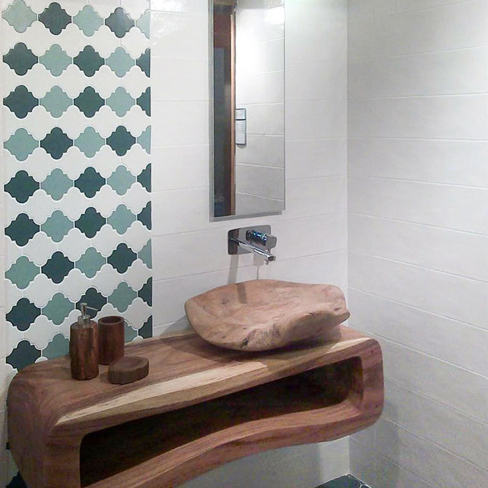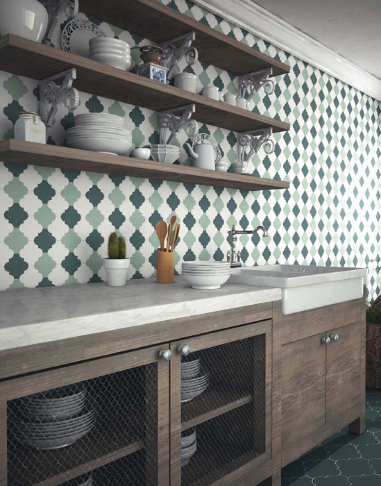 Благодаря тому, что коллекция Provenzal от испанской фабрики Natucer изготовлена из керамогранита, она имеет универсальное использование в интерьере. Задумка дизайнера может не ограничиваться лишь использованием стена, но и быть продолжена на полу, поддерживая единый стиль. Плитка достаточно монохромна, практически не имеет разности по тону между собой. Цвета отличаются чистотой и сочностью, характерной для самобытного восточного Мавританского стиля, стиля «тысячи и одной ночи».