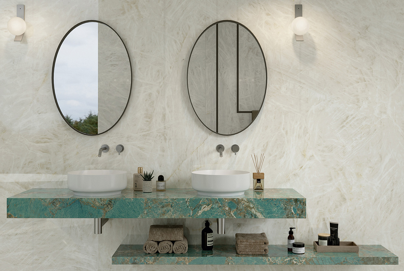Коллекция представлена в трех популярных форматах: 60х120 см, 120х120 см и 120х278 см, что позволяет воплощать самые смелые дизайнерские идеи. Мраморы, граниты и кварциты насыщенных оттенков, вдохновленные природными богатствами разных стран, станут ярким акцентом в любом интерьере. Они идеально подходят для оформления частных резиденций, общественных пространств, коммерческих объектов и роскошных отелей.