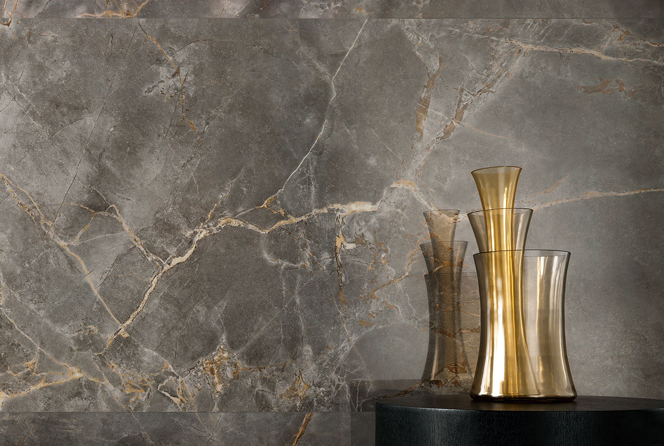 Вдохновленный тосканским мрамором, этот оттенок сочетает насыщенный серый цвет с золотистыми прожилками, которые придают материалу яркую индивидуальность. Лаппатированная поверхность раскрывает глубину и богатство деталей, а матовая и Hammered обработка подчеркивают натуральность камня. -