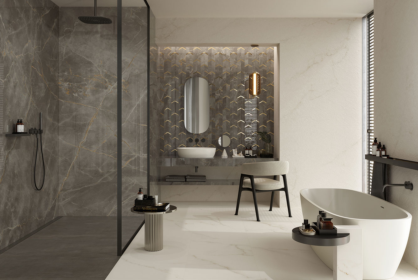 Коллекция Marvel X сочетает в себе цветовой и структурный реализм, предлагая пять видов поверхностей: лаппатированную, матовую, Hammered, Silk и Matt. Это делает ее грандиозным универсальным проектом, который подходит для любых интерьеров – от классических до современных.