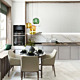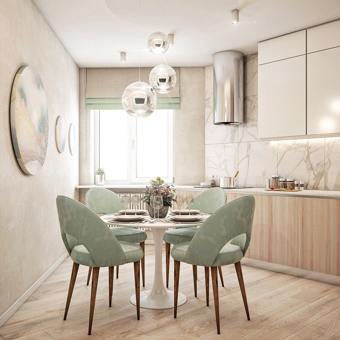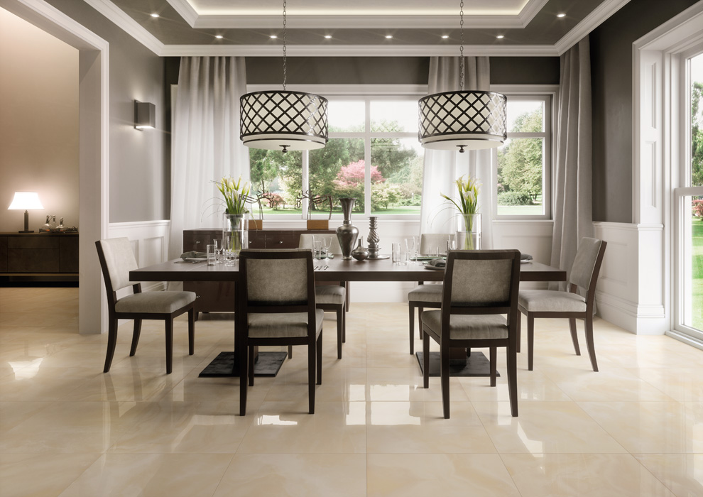 Материал отлично впишется в интерьеры классического и современного типа. Оттенок самодостаточен, его можно использовать без контрастирующего темного дополнительного фона, который может только испортить нежное очарование спокойного солнечного оникса.