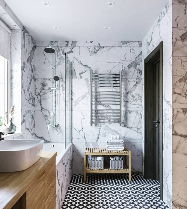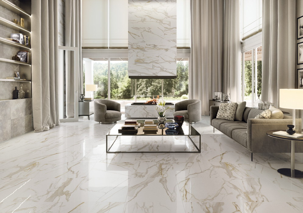 • Шарм Эво Калакатта (Italon Charme Evo Calacatta) – белый мрамор с характерными для данного вида золотистыми
