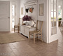 Дизайнерская задумка коллекции состоит в возможности сочетания обоих размеров в фантазийную паркетную укладку по типу «кольчуга» или использования каждого формата самостоятельно. При этом плитка по качеству имитации и исполнения может составить полноценную конкуренцию натуральной древесине и в отличии от своего природного протипа не растрескивается, не теряет своих первоначальных эстетических качеств, не скрипит. Отлично подходит для оформления влажных зон в интерьере, что сложно выполнить с натуральным деревом ввиду его гигроскопичности. Дерево – универсальный материал отделки для любого интерьера. Создает теплую и радушную атмосферу.